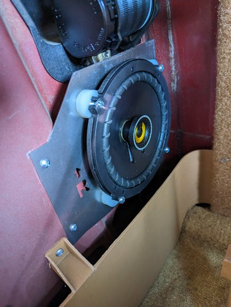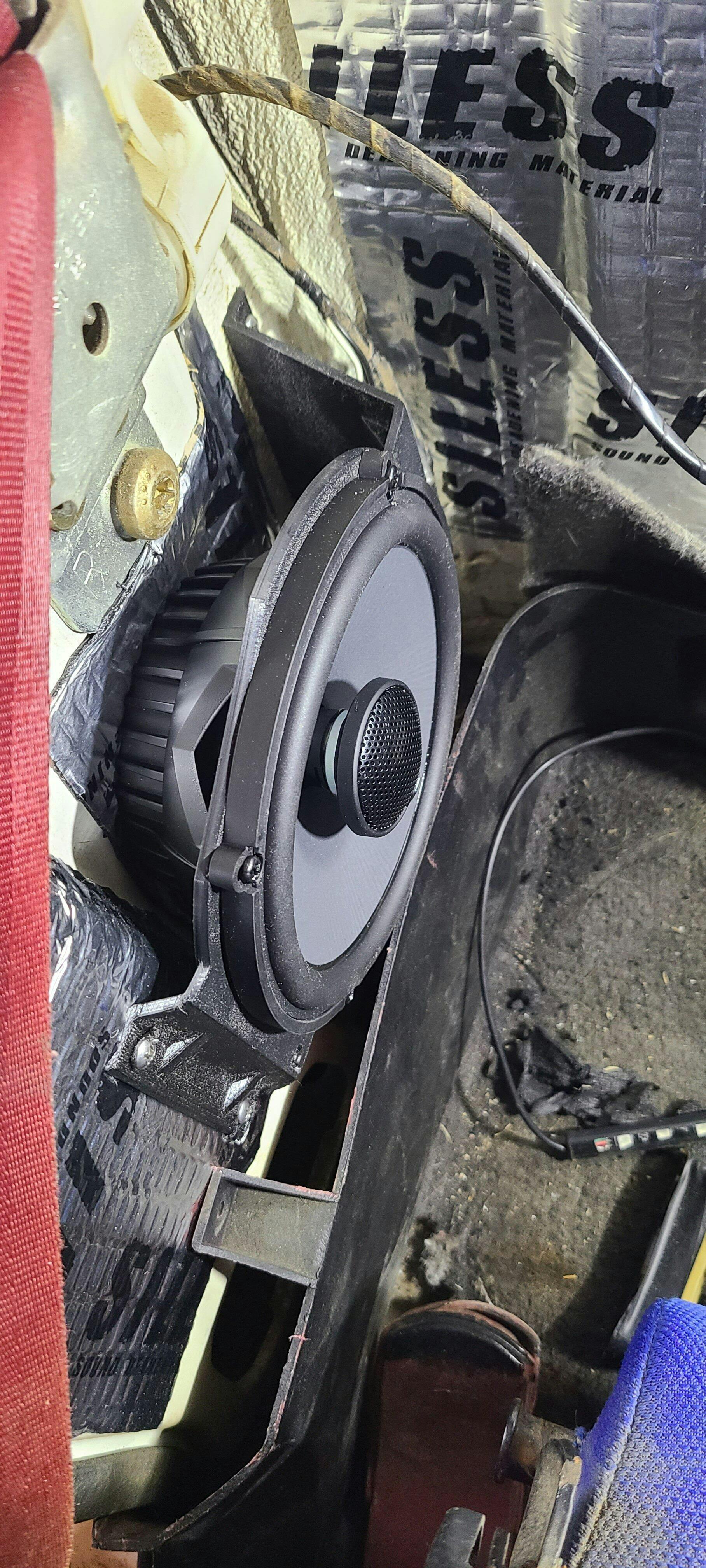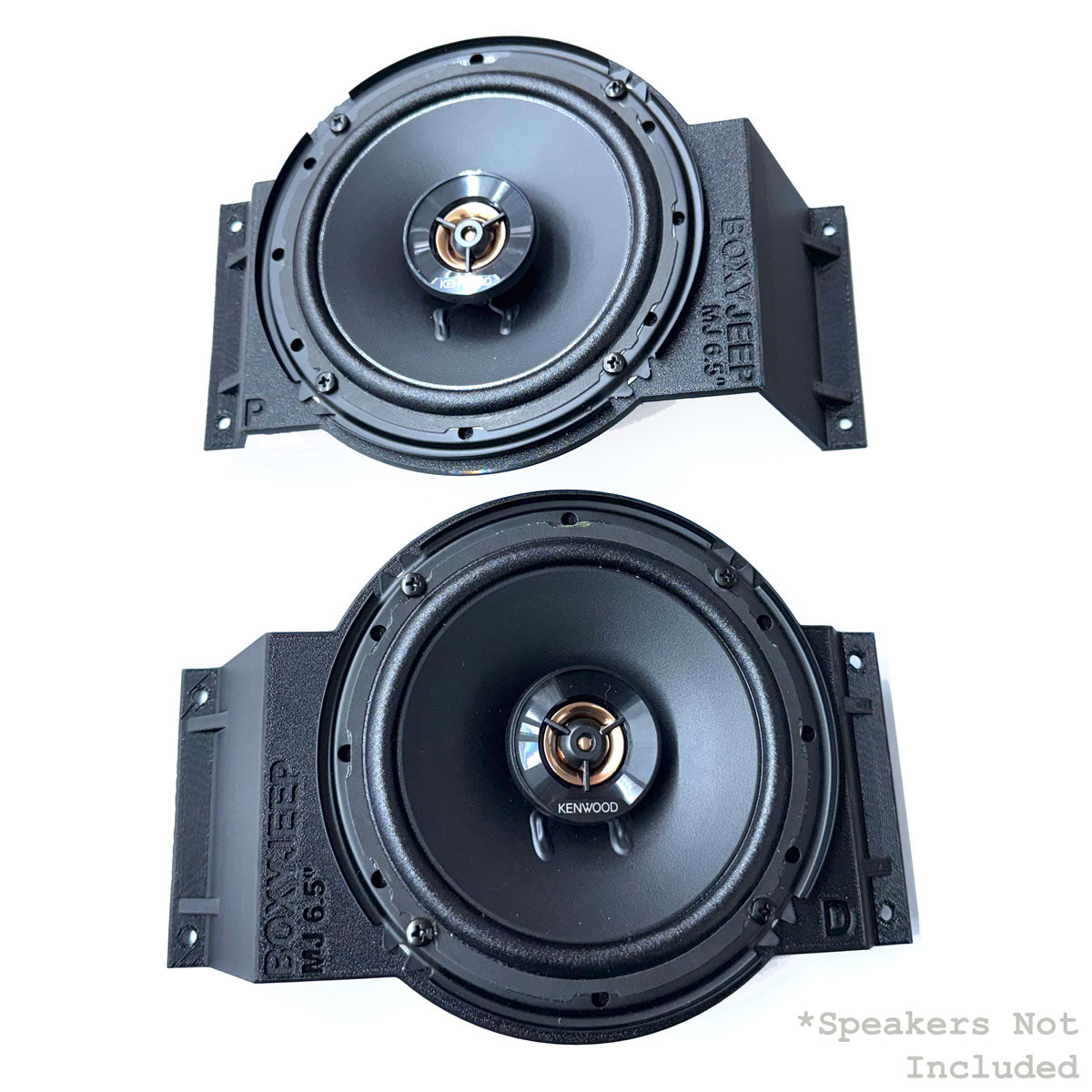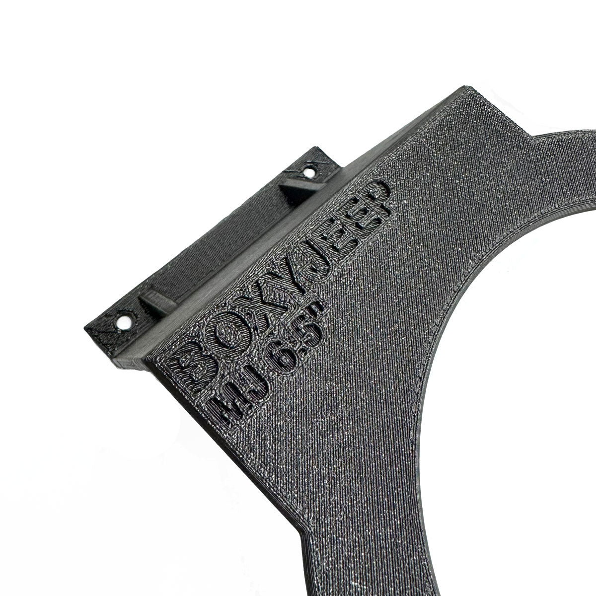 These have enough material on the inner diameter to shave as needed to set the proper relief for the back of a 6.5” speaker. Since there’s some variation among different speaker manufacturers, this is a plus. So be prepared to shave a little as needed to get a flush fit. Also, I opted to drill a 1/4” hole in each bracket to match the factory 4x6 brackets to allow for attaching the speaker harness pegs. A very shallow baffle behind the speaker is recommended to keep cab corner air and moisture away from the speaker. Cab corner trim just cleared on my MJ. Night and day difference from the 4x6s I was running before. I’m running cheap Sony 6.5s back there, only thing better would be room for 6x9s!