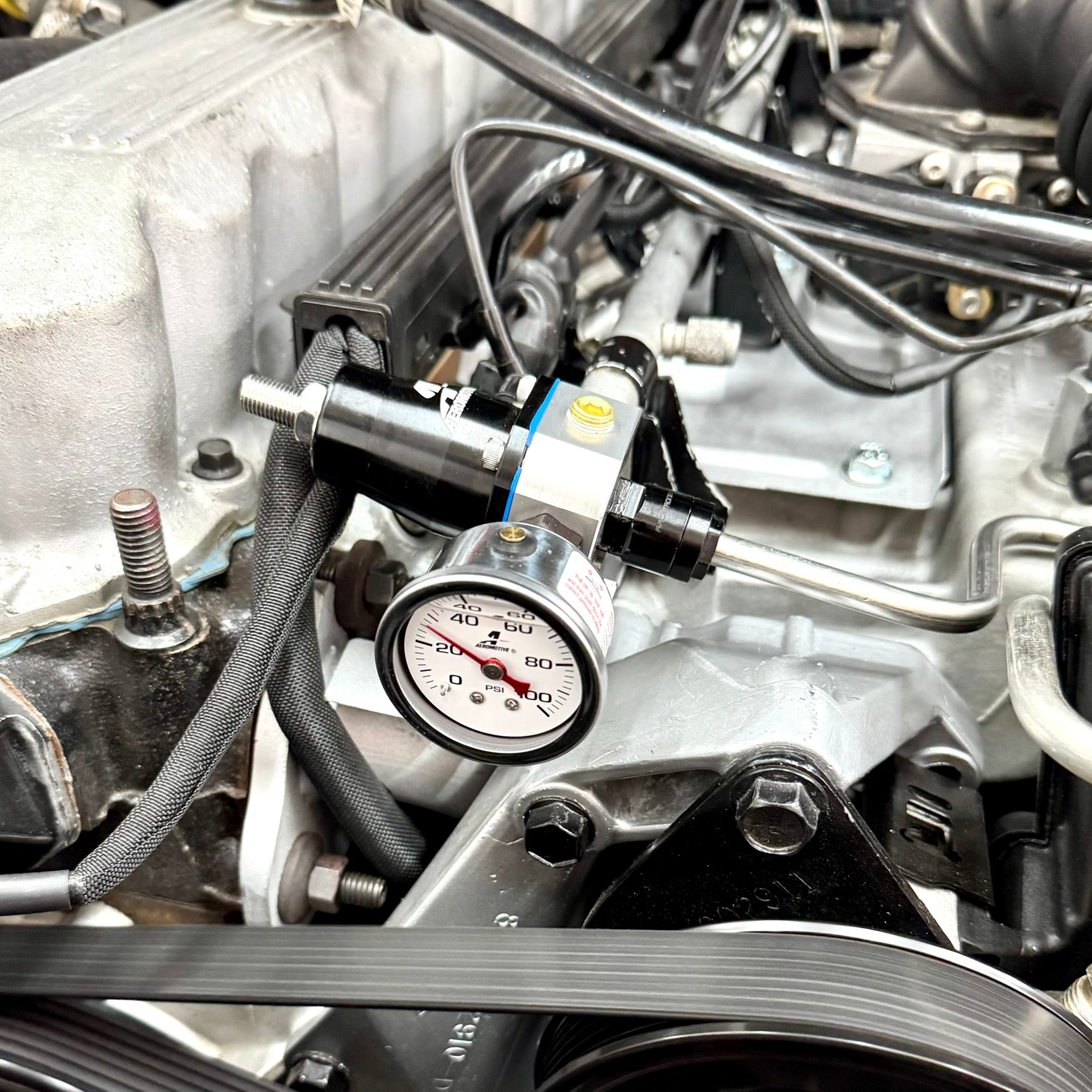 - Full Kit (Bolt-in) -- Includes Aeromotive AFPR, gauge, and all brackets/fittings (plus an extra -6AN output fitting for future use with custom fuel lines.