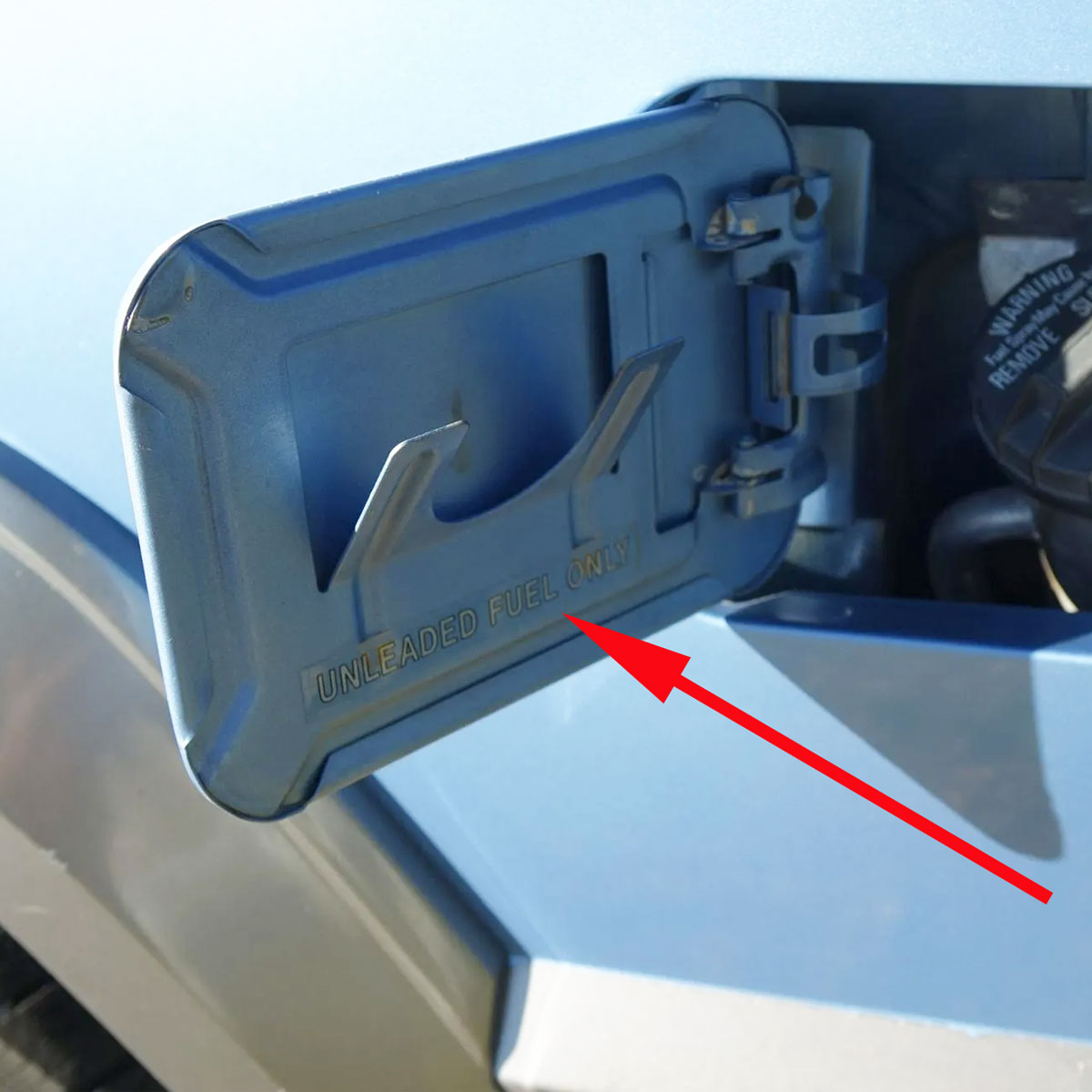 "Unleaded Fuel Only" warning informational label.